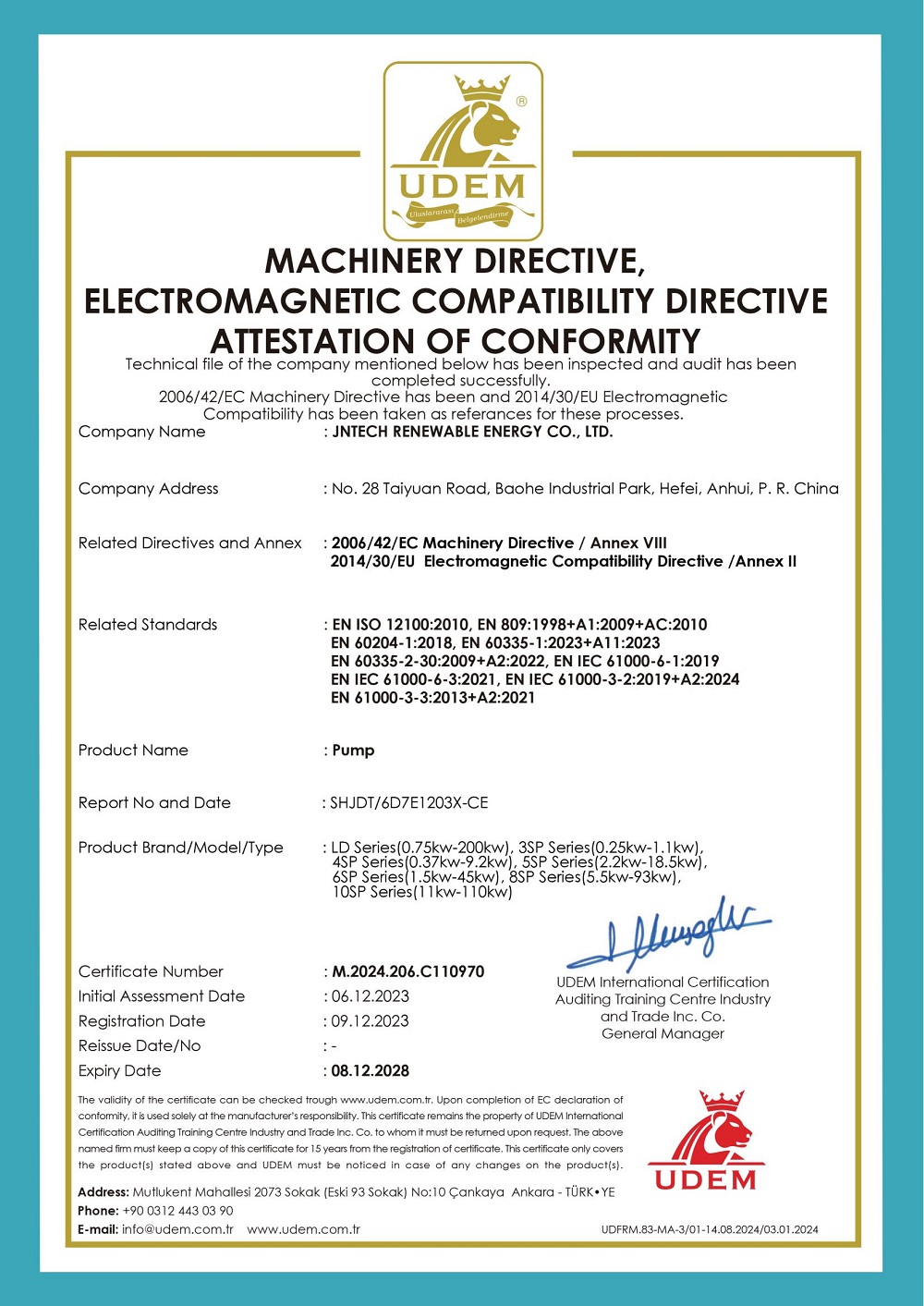 ใบรับรองปั๊มน้ำไฟฟ้ากระแสสลับ
