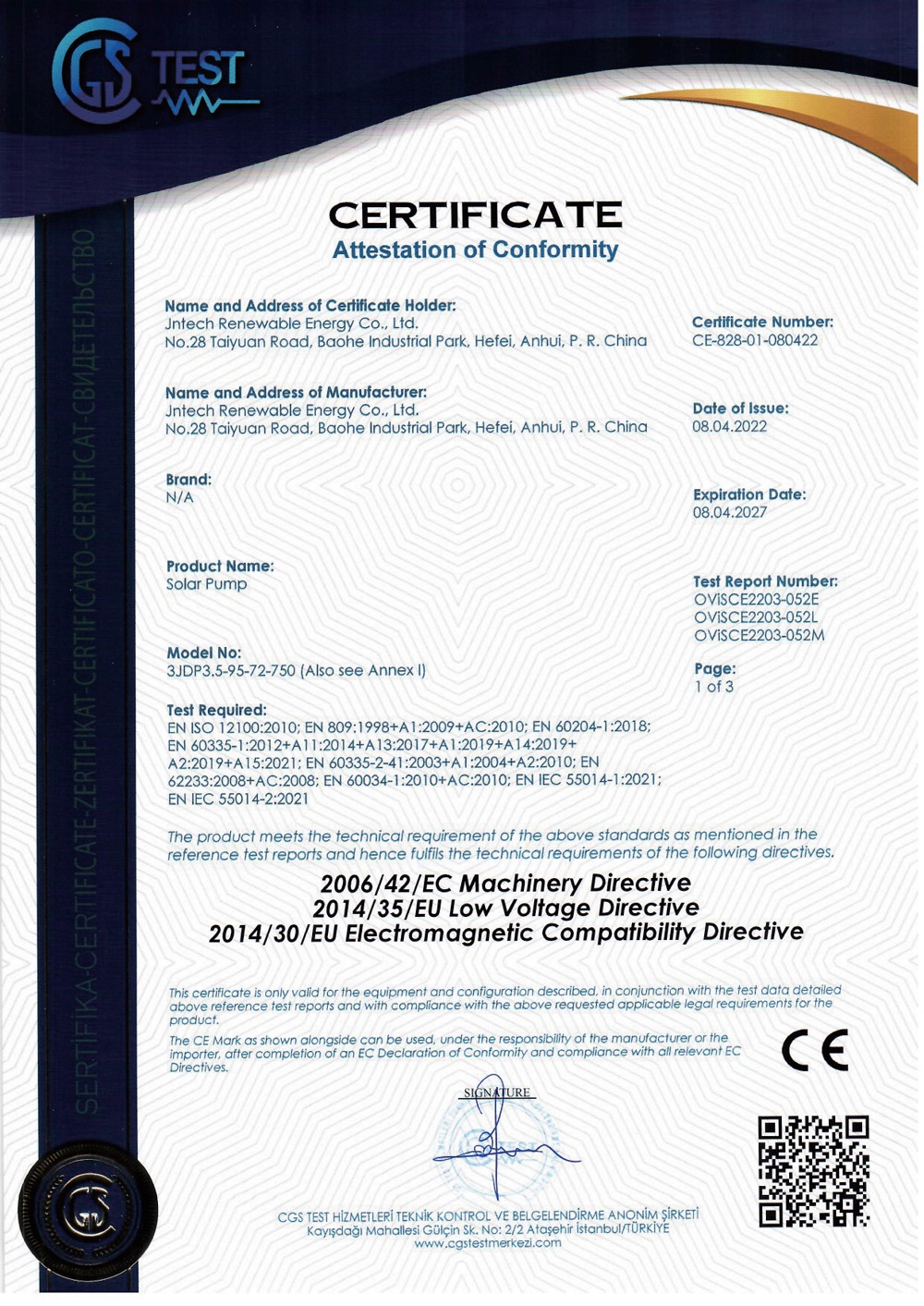ใบรับรองปั๊มน้ำไฟฟ้ากระแสสลับ